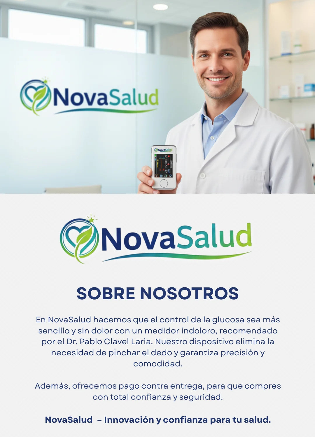 En un mercado lleno de imitaciones y promesas vacías, en NovaSalud™ trabajamos con un propósito claro: ayudarte a cuidar tu salud de forma segura, accesible y confiable. Cada producto que ofrecemos pasa por procesos rigurosos de control y verificación, para que recibas solo lo mejor — sin riesgos y sin complicaciones.